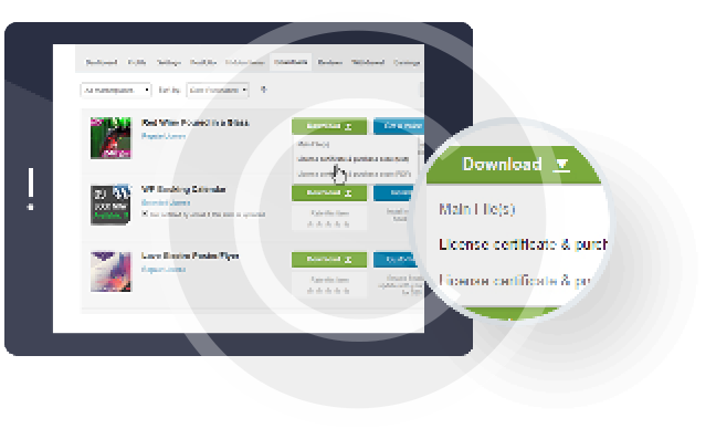 - Click « download » button, and in the drop-down menu select « license certificate & purchase code ».